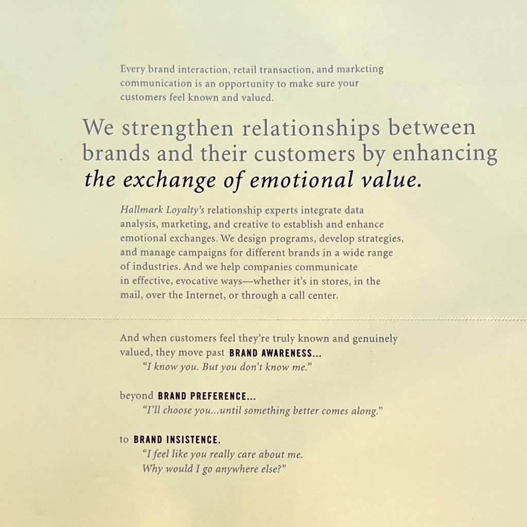 The other side of the business was custom greetings. Selling high-quality cards from Hallmark is pretty straightforward…the complexity comes in describing customization services.