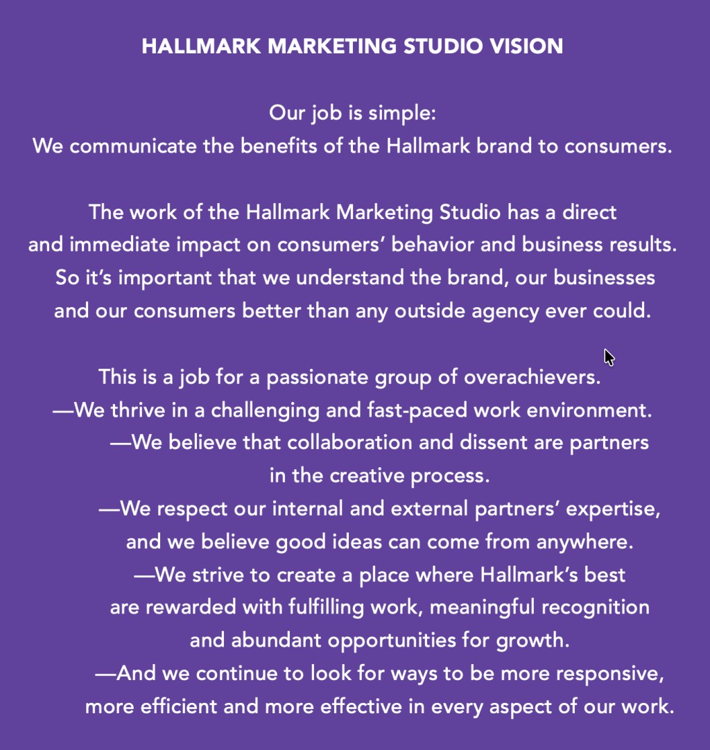 Darren Abbott (now Hallmark Chief Creative Officer), as we were building a small design team into a full-service internal agency. The lines about dissent and respect were my favorites—still are. Even the tightest teams can (and absolutely should) disagree now and then. And roles shouldn’t always dictate contributions. Wholehearted collaboration isn’t easy. But it’s essential to doing good work.